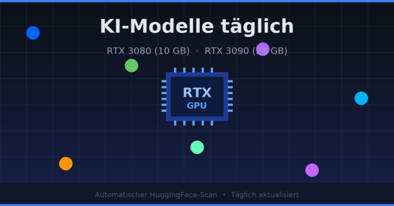 7 aktuelle HuggingFace-Modelle für lokale GPU-Nutzung. 4 für RTX 3080 (10 GB), 7 für RTX 3090 (24 GB). Täglich aktualisiert.