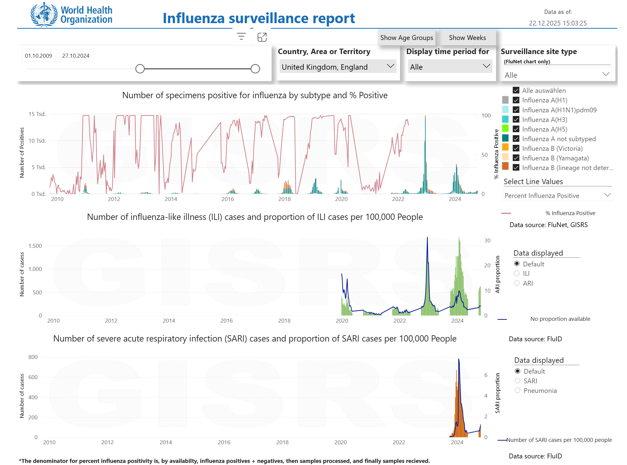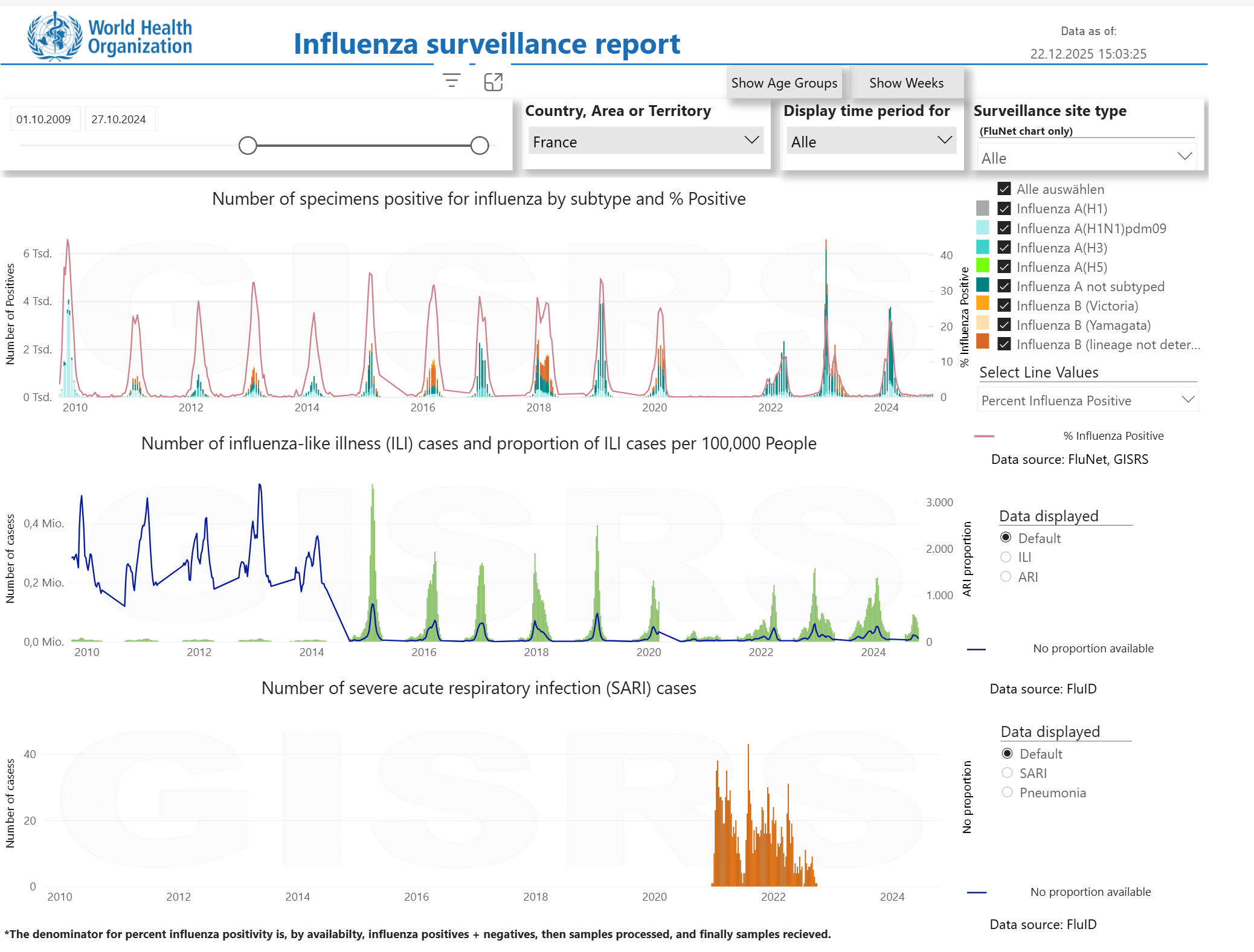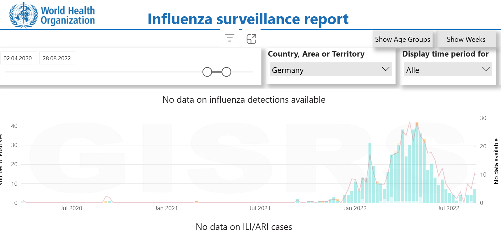 Ungefähr am 2.04.2020 verschwindet in Influenza aus das Statistik der WHO