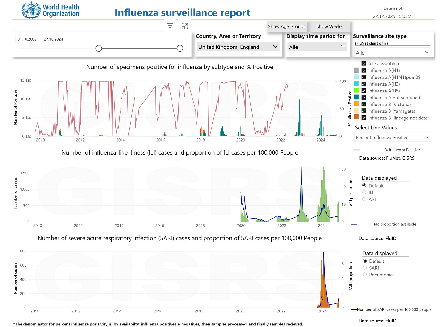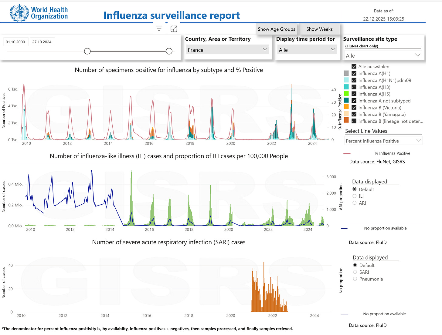 28.12.2020: “FG17: aus AGI Sentinel gab es letzte Woche 213 Proben, hiervon waren 11% SARS-CoV-2-positiv, 28% Rhinoviren, es gab keine Influenza oder andere respiratorischen Viren […] Influenzanachweise so niedrig/ausbleibend, warum?”