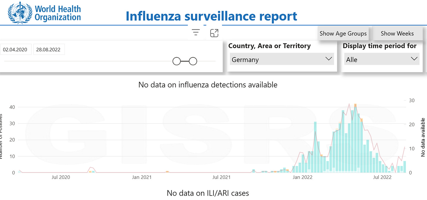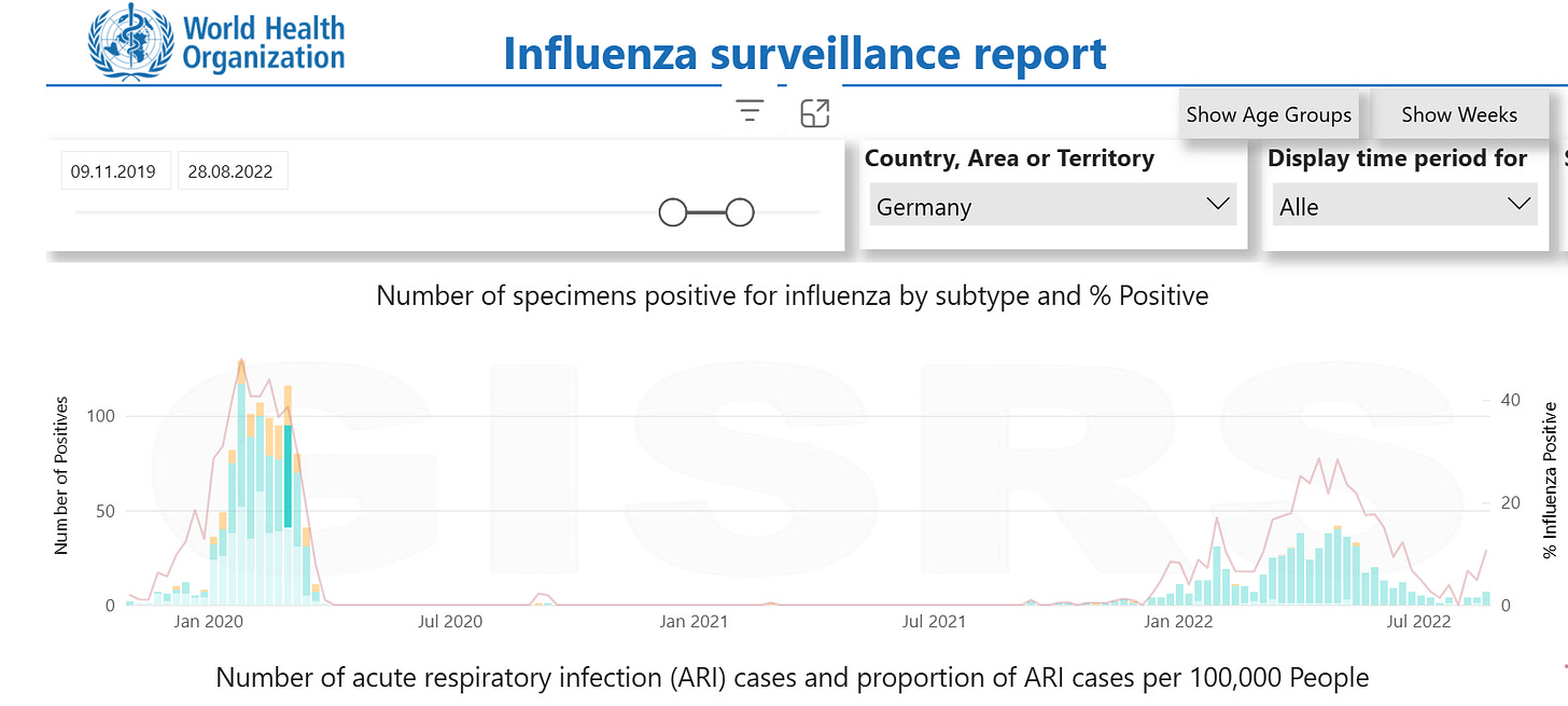 Nur, die Sentinel Daten und die RKI-Files sprechen tatsächlich gegen die Hypothese der Umbenennung. Influenza war 2020/21 nicht ausgestorben, nachgewiesen wurde das Virus aber wohl nur in Reiserückkehrern.