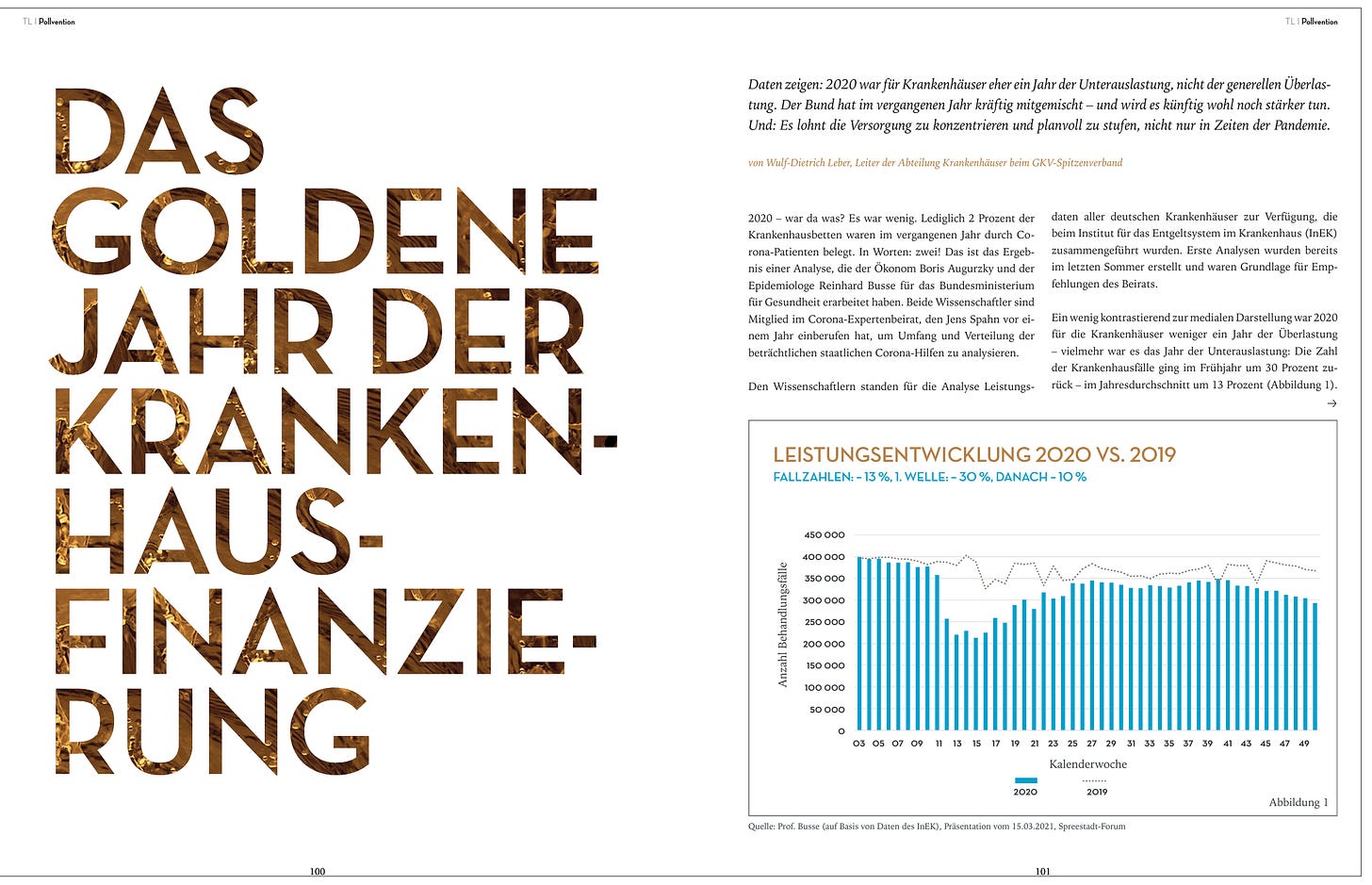 Leber, W.-D.: Das goldene Jahr der Krankenhausfinanzierung, Deges, S. (Hrsg.): Transformation Leader 02/2021, Verlag ZENO, Heidelberg 2021, S. 100-106 https://www.wulf-dietrich-leber.de/_files/ugd/5e48c7_01d1de922c334c81952fe842138a861d.pdf