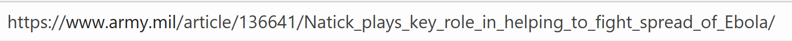 Natick plays key role in helping to fight spread of Ebola. (2014, November 4). www.army.mil. https://www.army.mil/article/136641/Natick_plays_key_role_in_helping_to_fight_spread_of_Ebola/